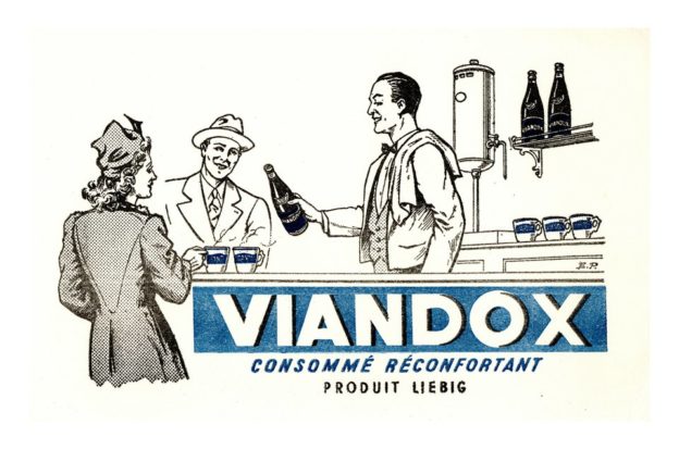 Tout commence à la fin du XIXᵉ siècle avec le chimiste allemand Justus von Liebig, inventeur de l’extrait de viande concentré. L’idée est simple : condenser la saveur d’un bouillon dans une goutte. En France, la « Compagnie française des produits Liebig » s’empare du concept et, dans les années 1920, lance le Viandox. Le nom claque, la bouteille intrigue, et la promesse séduit : quelques gouttes suffisent pour relever n’importe quel plat. Dans une époque où la viande est encore un luxe, cette “viande en flacon” est presque magique.